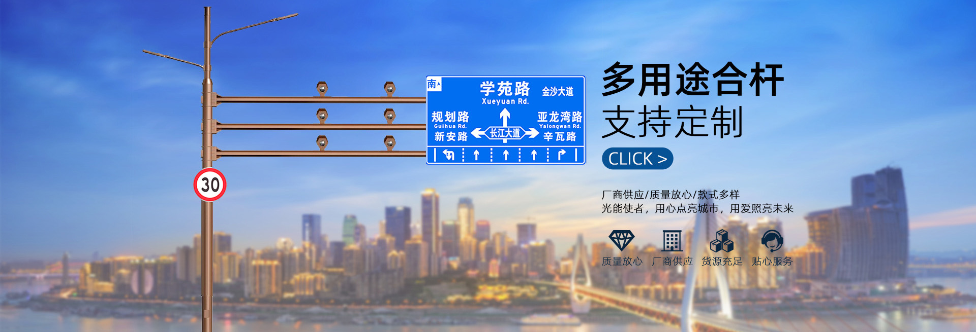專業(yè)廠家:集研發(fā)、設(shè)計、生產(chǎn)、定制、加工、銷售交通道路桿件,標志牌,信號燈,路燈等產(chǎn)品為一體,自有500余人的生產(chǎn)加工團隊,具備30余人的專業(yè)銷售團隊,我司有代理、分銷、批發(fā)等銷售渠道。